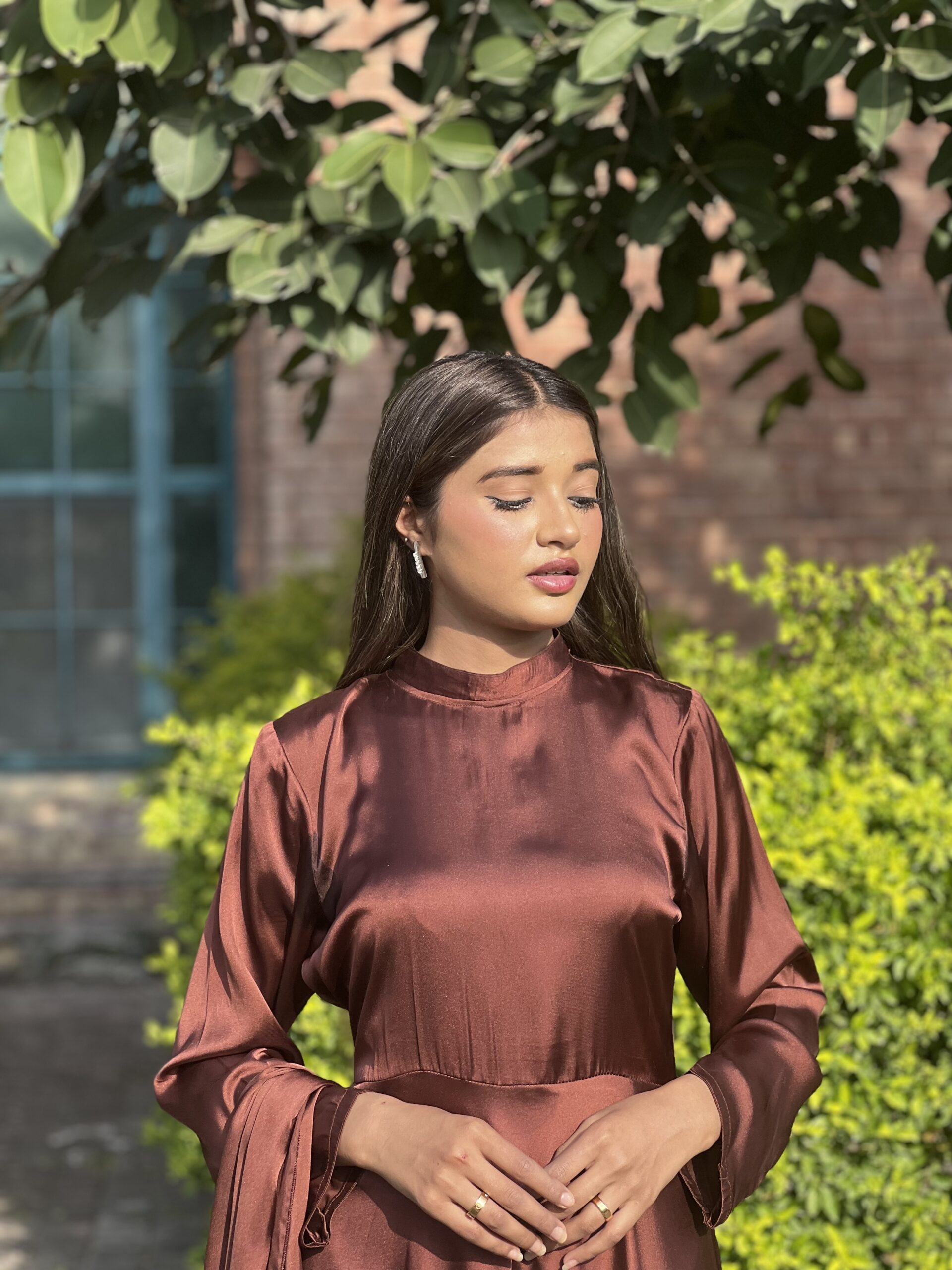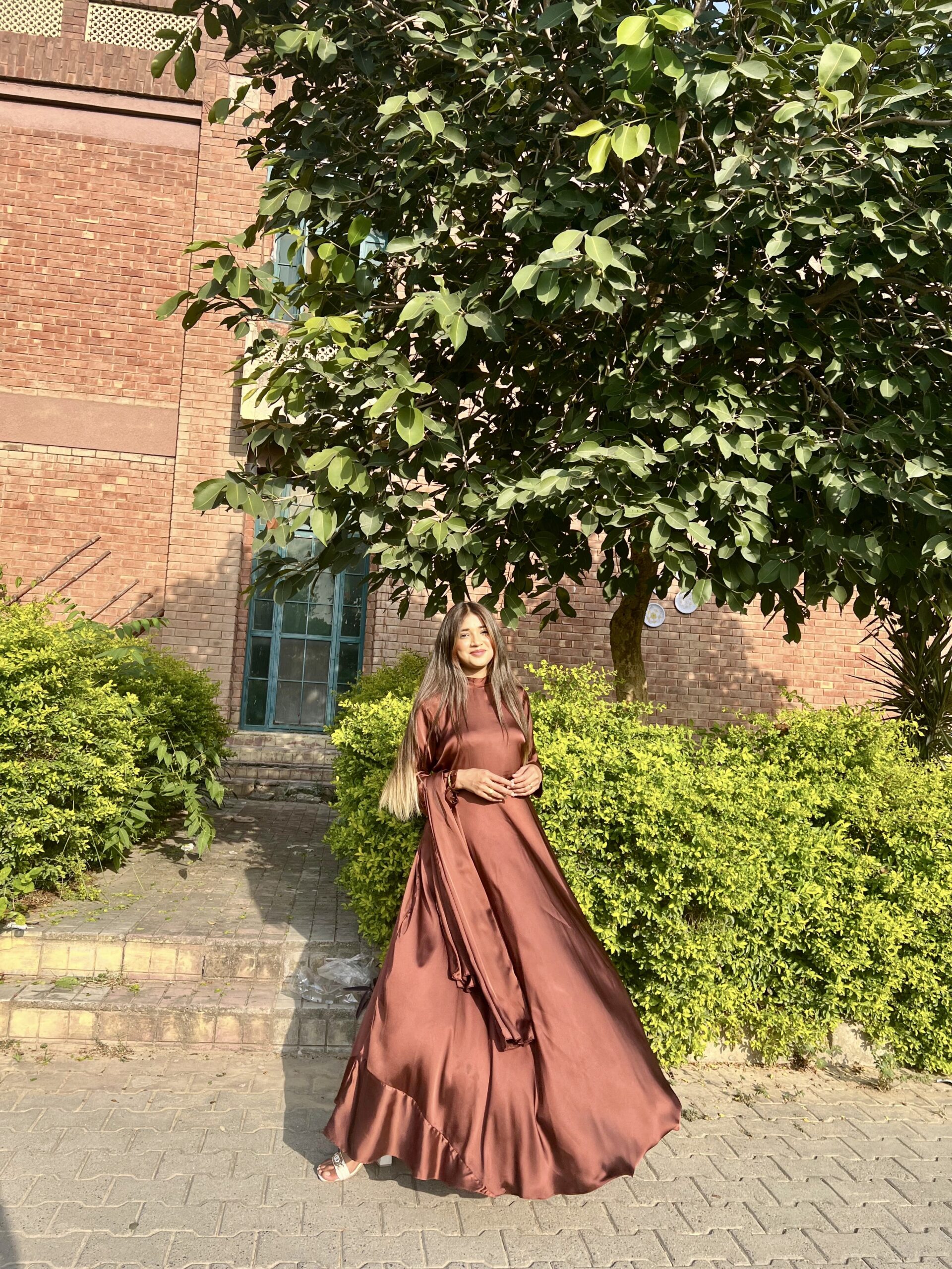 This brown flared dress features a rich autumn hue and a beautifully flowing silhouette. Designed for comfort and movement, it’s perfect for daytime events, outdoor gatherings, and elegant casual wear.